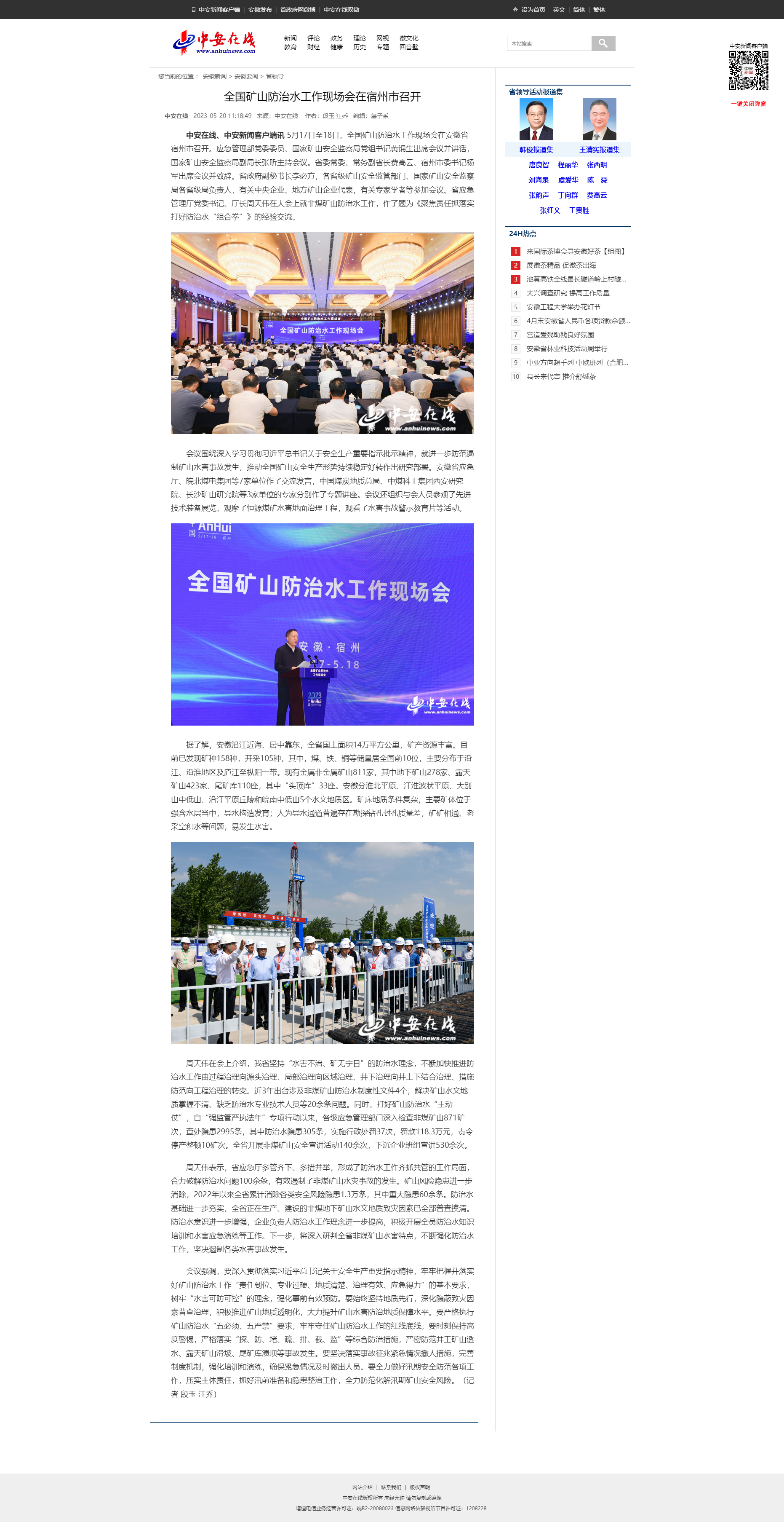 5月20日中安在線:全國礦山防治水工作現場會在宿州市召開