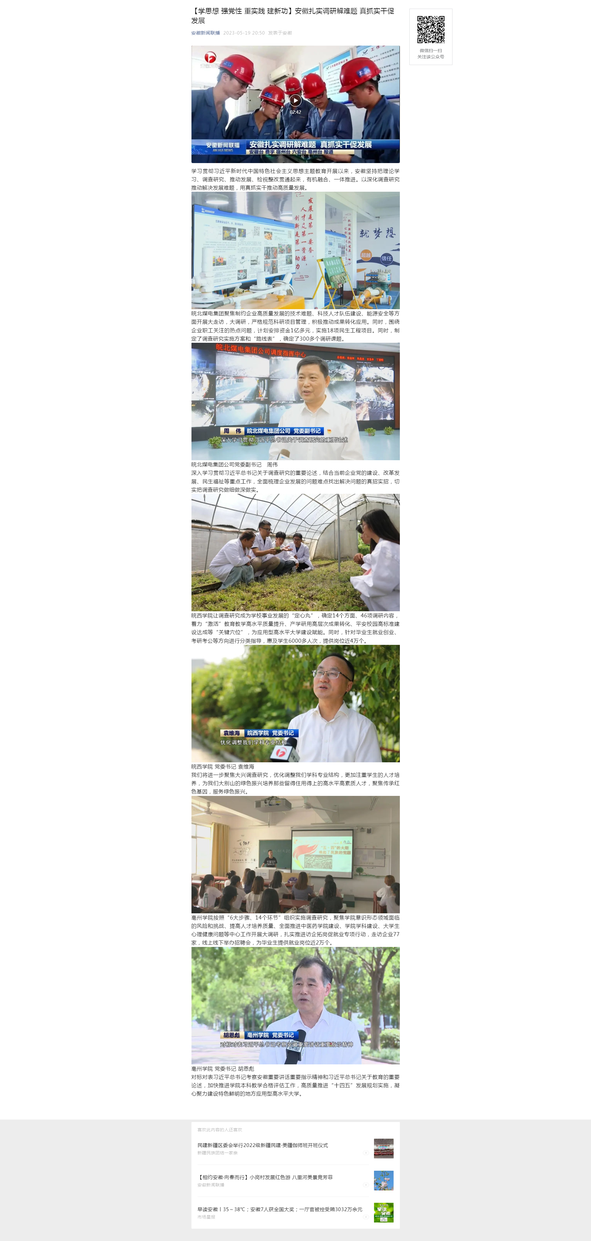 5月19日安徽新聞聯播:【學思想 強黨性 重實踐 建新功】安徽扎實調研解難題 真抓實干促發展