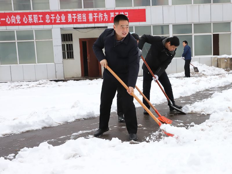 大家冒著寒風齊心協力、相互配合,你鏟我掃,一派熱火朝天的景象,認真細致地清掃道路上的積雪,盡管大家的臉被凍的通紅,但手中的掃雪工具在不停的揮舞著。經過一上午的清掃,礦區各主干道積雪全部清掃完畢,每個人都忙的汗流浹背,在寒風中構成一道靚麗的風景線。