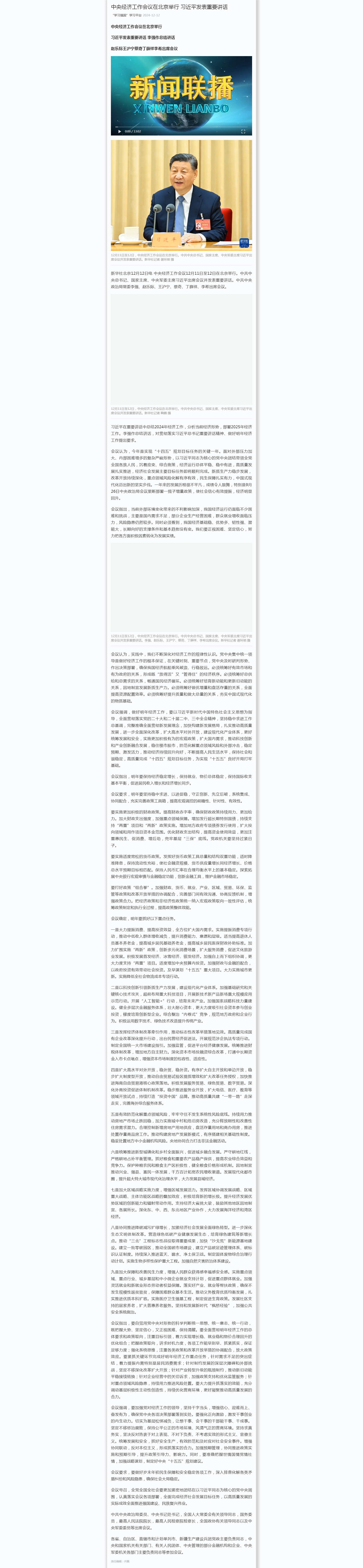 中共中央政治局召開會議 分析研究2025年經濟工作 研究部署黨風廉政建設和反腐敗工作 中共中央總書記習近平主持會議