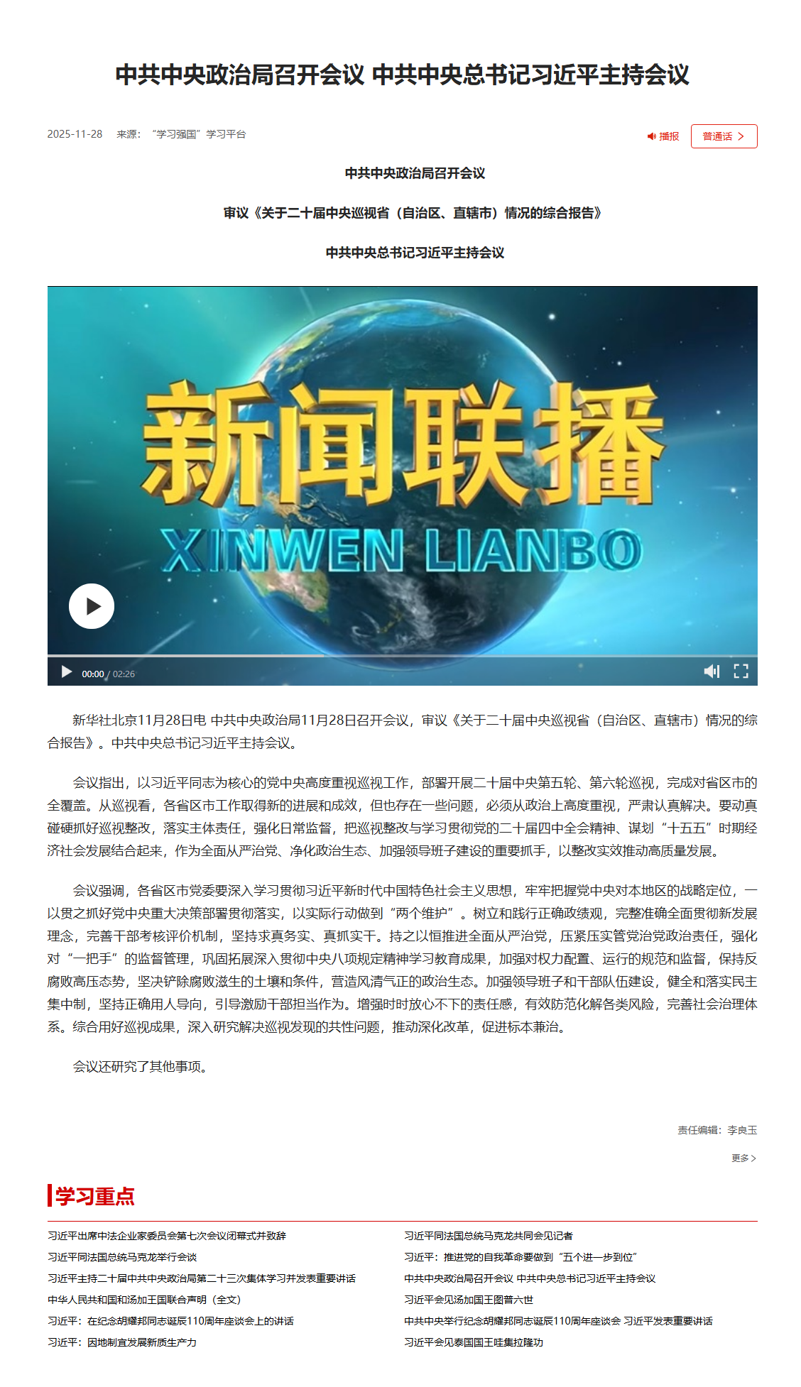中共中央政治局召開會議 中共中央總書記習近平主持會議